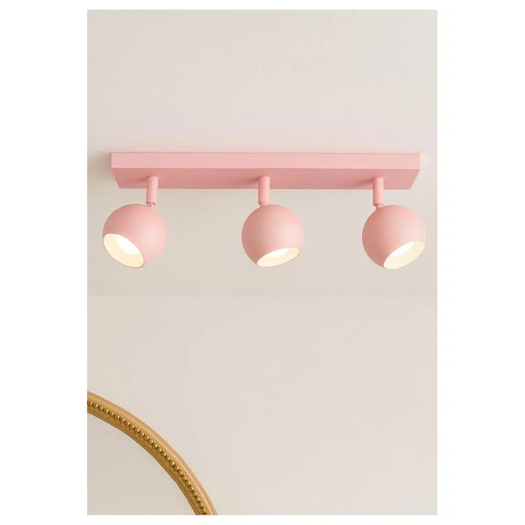 Gövde Rengi: Bebe Pembe (Soft pastel ton)Başlık Şekli: Küre formunda modern tasarımMalzeme: Dayanıklı elektrostatik boyalı metal gövdeDuy Tipi: GU10 – Tasarruflu LED ampullerle uyumlu AMPUL DAHİL OS RAM MARKA TASARRUFLU LED 2700 K 3000K 4000K 6500K BWYAZ SARI GÜNIŞIĞI RENK SEÇENEĞİ İÇİN İLETİŞİME GEÇİNİZ LÜTFENAmpul Dahil mi?: İsteğe bağlıIşık Yönü: Hareketli başlıklar sayesinde yönlendirilebilirKullanım Alanı: Bebek odası, çocuk odası, genç odasıMontaj Tipi: Tavan montaj, kolay kurulumBoyut: 60 cm gövde uzunluğu